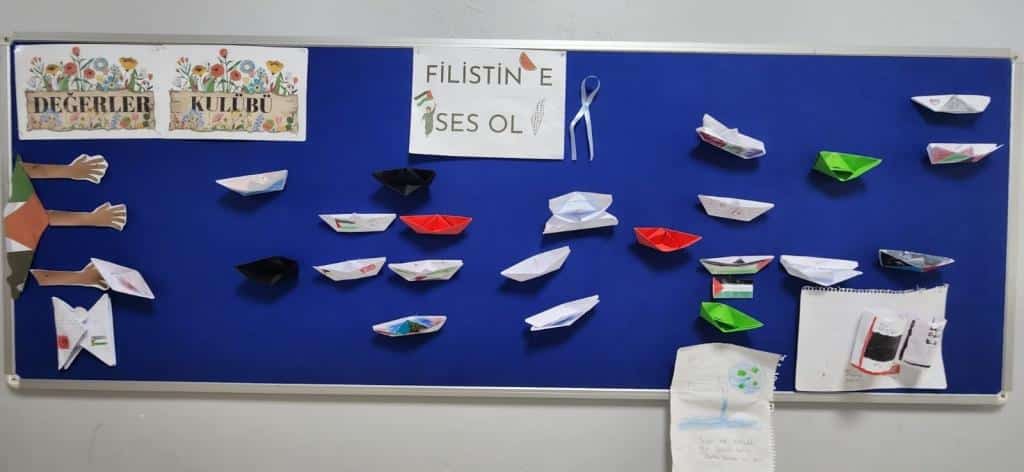Okulumuzda bugun "Filistin Farkındalık Etkinlikleri" kapsamında ögrencilerimiz pano çalışması yaptı,iIgili belgeseller ögrencilerimize izlettirildi.Etkinlikler, eğitim camiasinin ortak vicdanini temsil etme sorumlulugunu beraberinde getirdi. Düzenlenen etkinliklerde ayrica 'Türkiye Yüzyili Maarif Modeli"nin "Erdem-Değer-Eylem" yaklaşımı doğrultusunda, öğrencilerin eleştirel düşünme becerileri ve sorumluluk bilinci geliştirmeleride amaçlandı. Okulumuzun da ismini taşıdığı KUDÜS ŞAİRİ Nuri PAKDİL'in ''Anneler ve kudüsler'' ile Mehmet Akif İNAN'ın Mescid-i Aksa şiiri öğrencilerimiz ve öğretmenlerimiz tarafından topluca seslendirildi. Etkinliklere katılan tüm öğretmenlerimize, öğrencilerimize ve personelimize teşekkür ediyoruz.